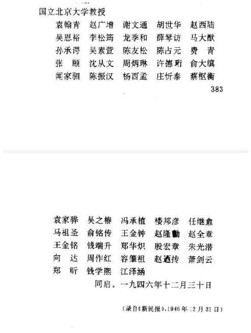12月30日…,北大48名教授写联名信登报,抗议美军暴行。教授们在登报前请校长胡适牵头署名,但平时高喊○◁○“爱自由◇▷▪,爱北大,爱学生”的胡适接到消息后,却拒绝署名★◁-。所以,教授联名信登报后,没有校长胡适的名字。