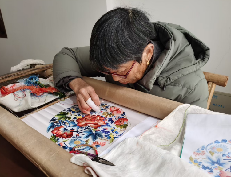 创业之初,刘晓燕在自家小院里带着几位村民学绣花。随着加入的人越来越多,在村委会的支持下,学习地点搬到了良各庄小学,从此有了固定的传承阵地。刘晓燕带着村里的姐妹拾起绣针,让京绣在北京郊区扎下根来,用文化赋能乡村振兴,圆了乡亲们“绣着花看着家”的心愿。