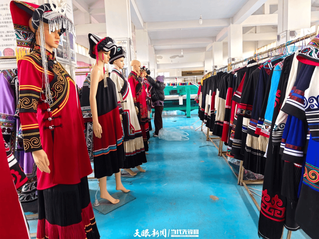 走进车间,绣着太阳纹、马樱花的乌蒙山型彝族服饰琳琅满目。“快过年了,大家都想穿盛装出去玩,买的人越来越多。”彝家姑娘龙艳手持剪刀精准裁剪布料,“多大的尺寸,要根据设计来裁剪。”