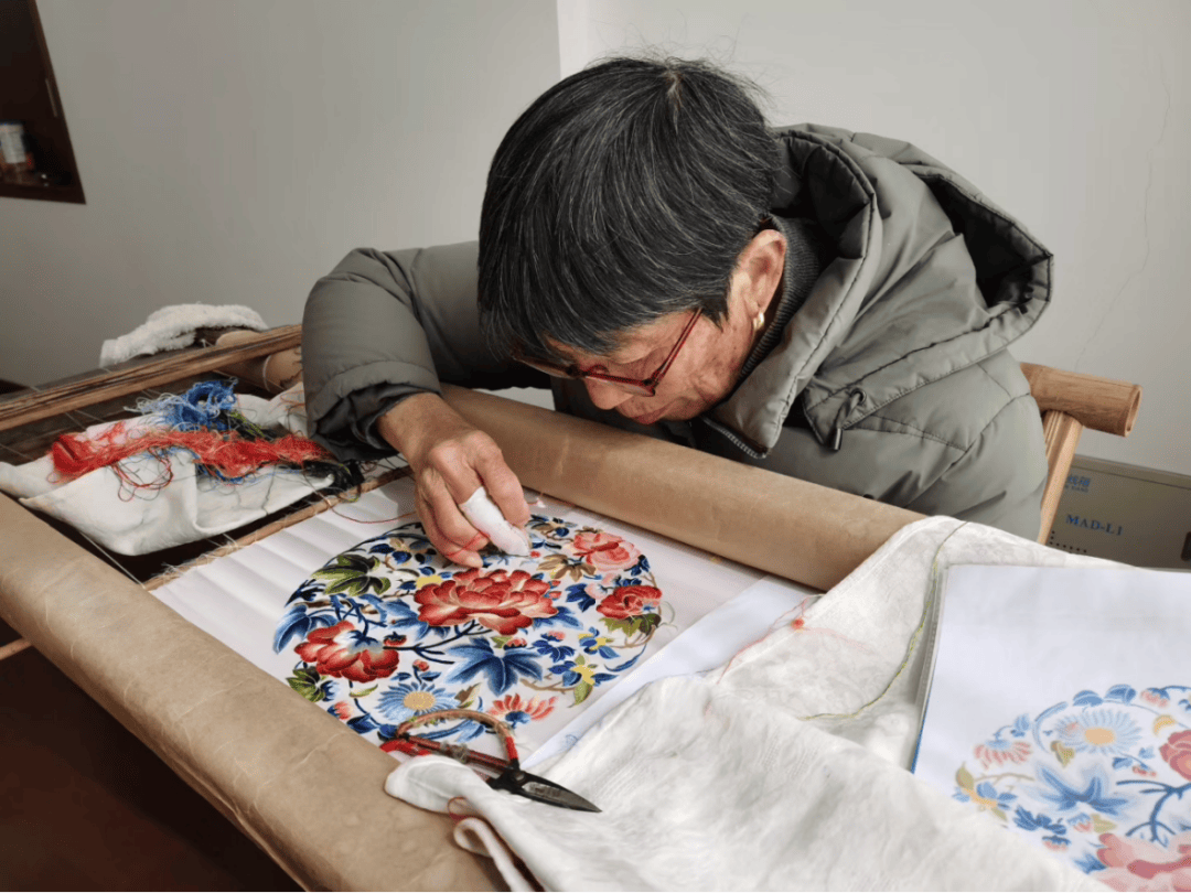 创业之初,刘晓燕在自家小院里带着几位村民学绣花。随着加入的人越来越多,在村委会的支持下,学习地点搬到了良各庄小学,从此有了固定的传承阵地。刘晓燕带着村里的姐妹拾起绣针,让京绣在北京郊区扎下根来,用文化赋能乡村振兴,圆了乡亲们“绣着花看着家”的心愿。