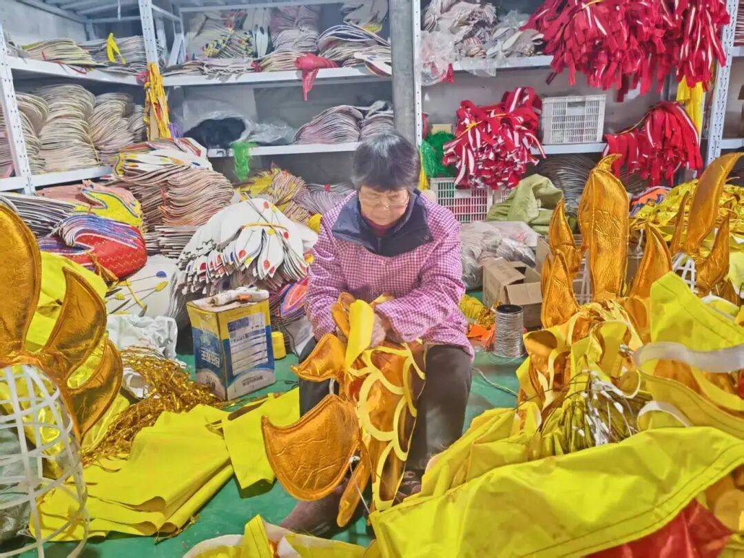 “全村八成村民都从事这个行业。”霍庄村党支部书记霍军政介绍,目前全村生产的舞龙、舞狮、舞扇、盔头、髯口、戏服等道具,已形成涵盖30大类、数百种产品的专业体系,占据长江以北地区70%以上的市场份额,更远销东南亚、美国等国家和地区。